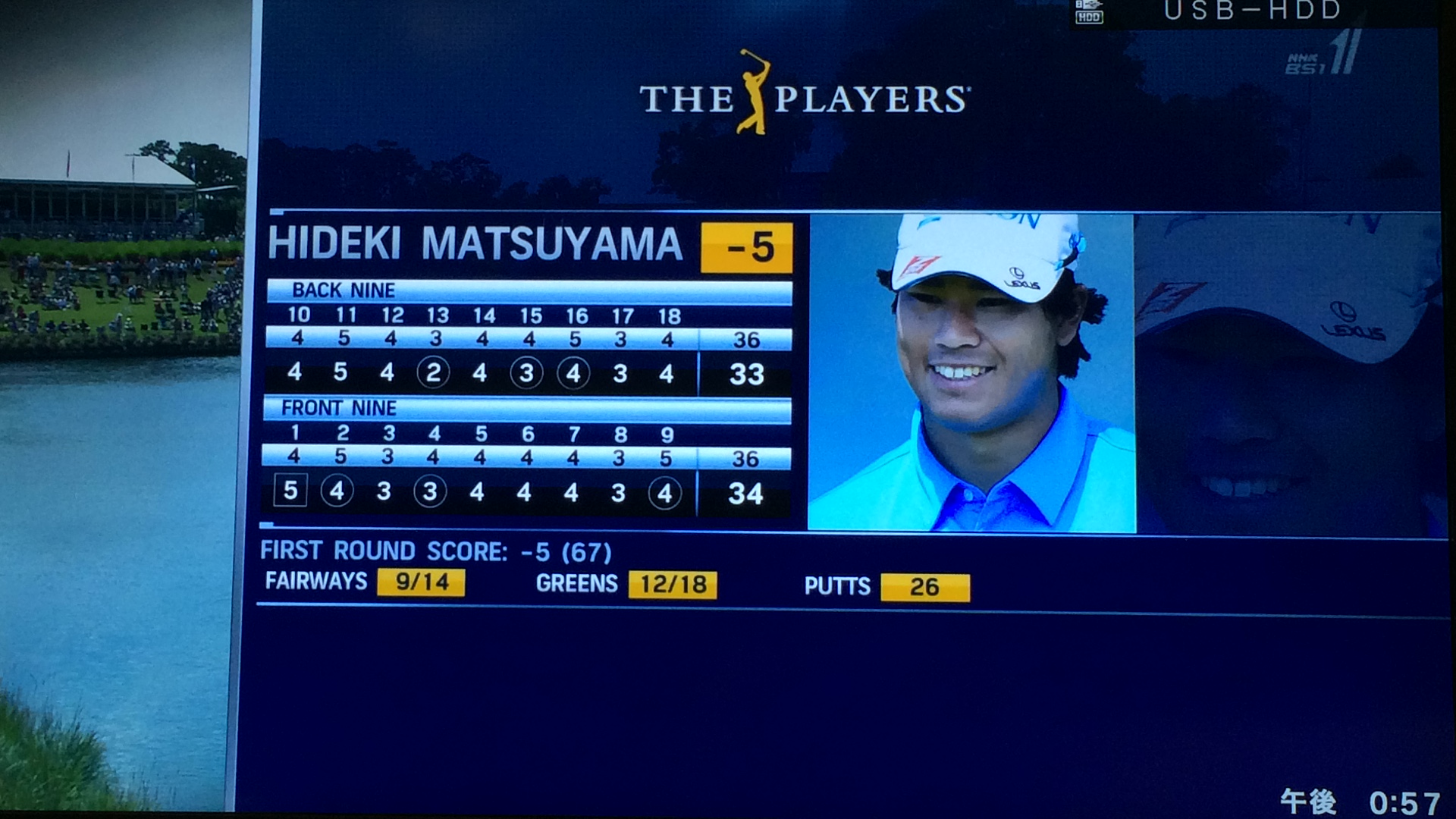 今大会2回目出場で午前中にスタートした我らが松山英樹選手の初日スコアは6バーディー、1ボギーの5アンダー(67)でトップタイ!