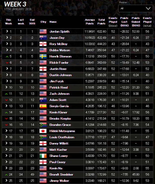 フェデックスランキング(2016/1/18現在)