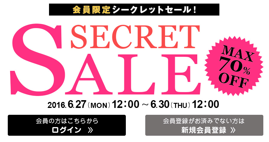 本日12:00 START!会員限定シークレットセールはこちら>>