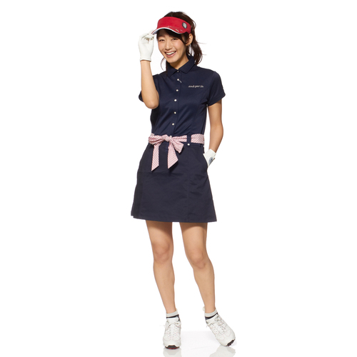 ウエスト周りにリボンの付いた、一枚で爽やかでスタイルよく見えるコーディネートが完成するワンピース。前立て部分の多ボタン使いや、ベルトループのメタルボタン等デザイン性も豊かです。トップスは肌触りが良く、スカート部分肌離れの良い素材を使った、着心地にもこだわったアイテムです。吸水速乾性も備え、機能性にも優れています。