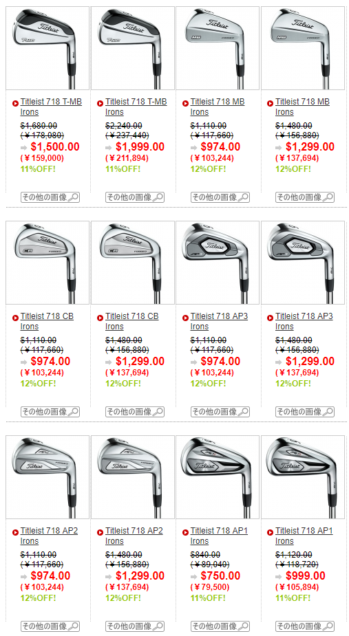 上の画像でもおわかりのように、718シリーズにはT-MB、MB、CB、AP3、AP2、AP1と6種類のアイアンモデルがございます。下の画像はアイアンのスペックになります。