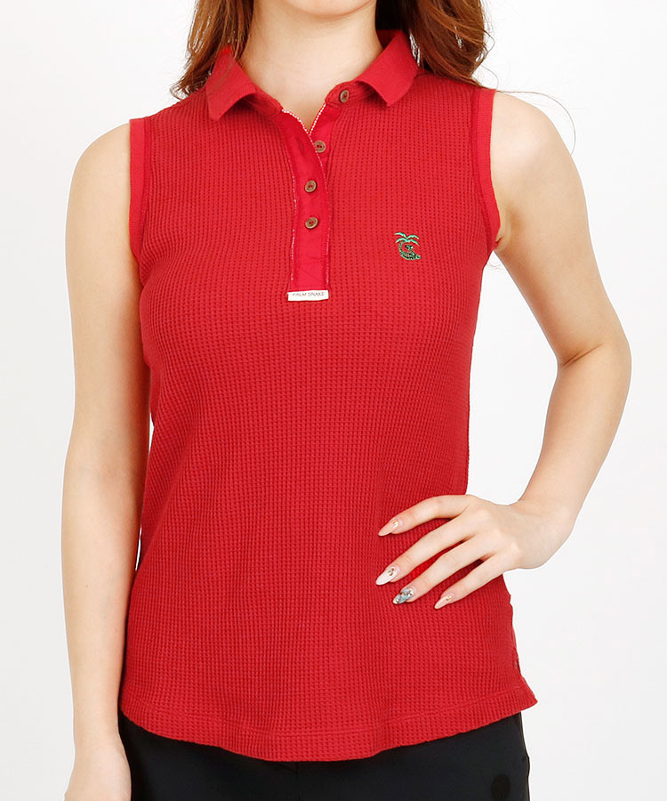 ワッフルコットン100♪ノースリーブポロ