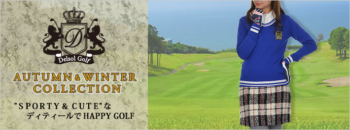 DELSOL GOLF(デルソルゴルフ)は、輝く太陽(DELSOL)の下、 「もっとカジュアルにゴルフを楽しんでもらいたい」 という想いから誕生。青い空と緑の芝生に映えるカラー、 プレー中のシルエットを意識したデザイン。ゴルフを愛するみなさまに機能的なデザインや素材にこだわるだけでなく、ゴルフウェアをおしゃれとして楽しんで着ていただけるようデザインされた、SPORTYでCUTEなウェアを提案!