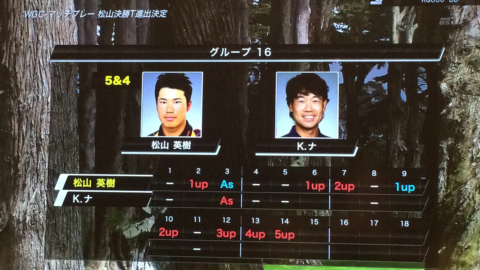 連日の3連続バーディーで対戦相手だったケビン・ナ選手を退いた松山選手。後半に入ってから調子があがり見事に初の決勝進出決定。