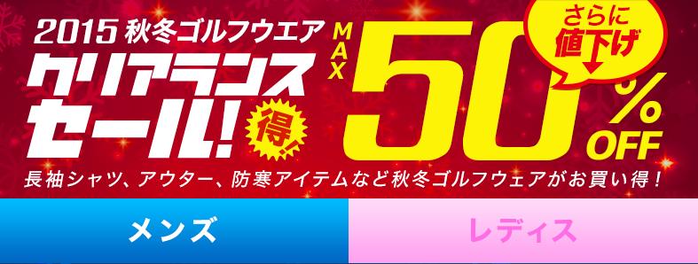 メンズ&レディースの秋冬ゴルフウェアが最大50%OFFからさらに値下げしています。長袖シャツ、アウター、防寒アイテムなど秋冬ゴルフウェアがお買い得で現在人気爆発中♪
