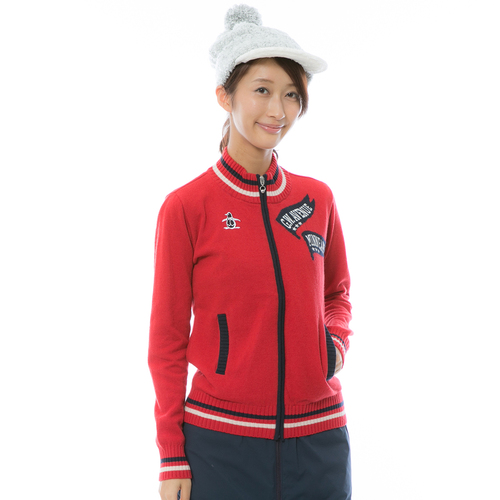 防風性能に優れた生地を使用したジップアップ式のニットです。襟まわりと裾にラインを配しつつ、左胸にはフラッグモチーフをデザインしたスクールテイストの1枚は、カーディガンのような使い勝手の良さが特徴です。ネイビー、ホワイト、レッドの3色をラインナップ。