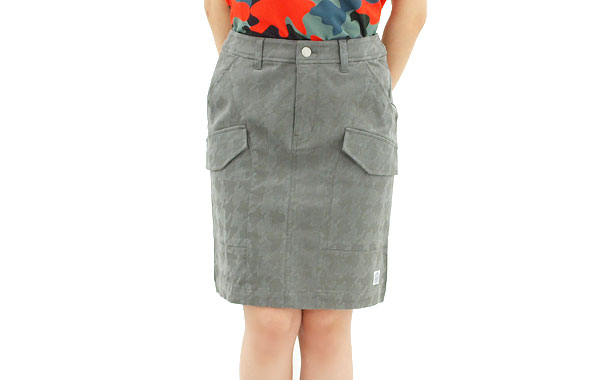 カモフラ風の千鳥柄をレーザープリントで施し、エンボス調の素材感に仕上げたハイクラスな一枚。 柄使いと、技法にこだわりを感じます。 デザインはカジュアルながらも、ラインがタイトめでシルエットがキレイです。